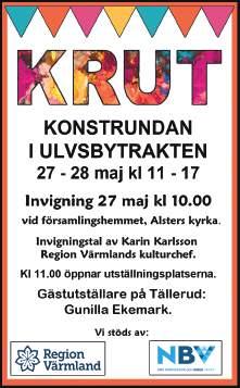 KONST. Sedan år 2000, med uppehåll för pandemin, har Konstrundan i Ulvsbytrakten, KRUT, varit ett traditionsenligt inslag i Ulvsby strax utanför Karlstad. Namnet KRUT associerar till styrka och kraft, vilket man finner såväl bland de medverkande aktörerna som i föreningen bakom.