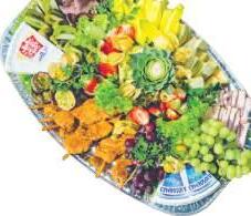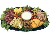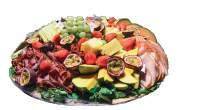 Delikatessbricka med kallskuret och färsk frukt. Beställning på minst fyra personer.