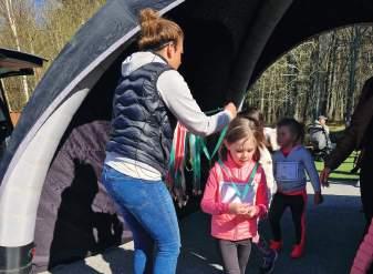 Loppet inleddes med en kort uppvärmning i form av gympa till fartfylld musik. I mål belönades alla barn med var sin medalj och en påse fylld med överraskningar.