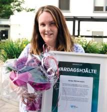 Anna Hilmersson överraskades på ett möte och fick ta emot utmärkelsen Vardagshjälte i Kil. ”Jätteroligt”, säger hon i ett pressmeddelande. Foto: Kils kommun