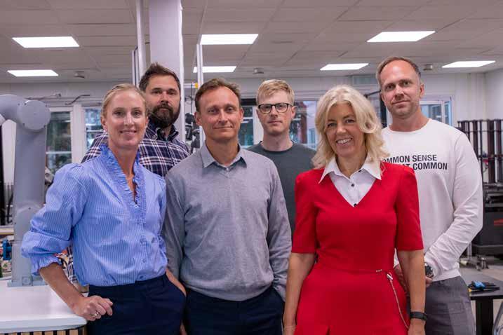 Helena Jerregård, vicerektor för samverkan vid Mälardalens universitet tillsammans med Robotdalens fyra ägare Anders Thunell, Torbjörn Backman, Åsa Nordin och Erik Hellström, samt John-Edvard Stenstrand, vd för MDU Holding. Foto: Anna Sandberg