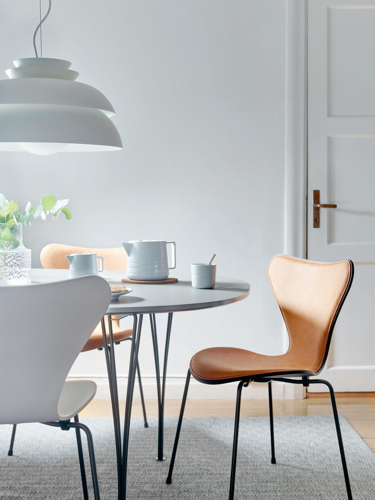 Ikoniska möbler i lite ny tappning, ja tack! 1. Pendel PH 5, pastell-ostrongrå-blå-rosa, 9 350 kr, Louis Poulsen. 2. Stol J39 jubileumsstol, ljus oljad ek, sjögräsflätad sits, 7 788 kr, Fredericia. 3. Fåtölj Little Petra VB1 Limited Edition, ben i valnöt/ mässing, fårskinn Moonlight, 48 615 kr, &Tradition. 4. Stol Lilla Åland, jubileumsutgåva Lilla Åland 80 år, rökt ek, 4 995 kr, Stolab. 5. Pall Anyone, green grey/vintage cognac, 4 295 kr, Maze. 6. Stol CH24 Y-stol Soft Crawford Wegner, north sea, oktober, naturflätad sits, 6 040 kr, Carl Hansen & Søn. 1 2 3