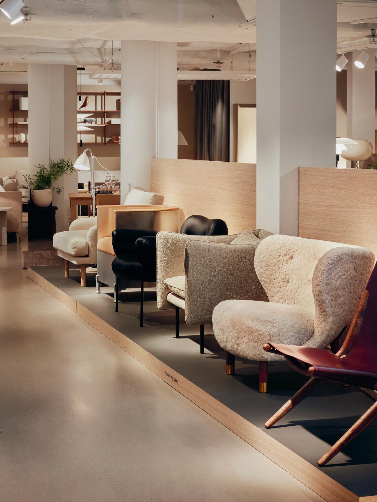 Så kom in och upplev en fysisk butik. Insup doften av trä och upplev designklassiker på riktigt. Stryk med handen på en mjukt såpad bordsskiva. Fingra på en handsydd söm på en fåtölj av kraftigt kärnläder. Upptäck sittkomforten i en pinnstol som har 75 år på nacken. Känn ödmjukhet inför en möbel som tar tid att tillverka. Och som får ta tid. Det krävs en timmes hand ätande för att skapa den välbekanta sitsen på Y-stolen. En timme, 120 meter papperssnöre och dussinet knutar. Lika lång tid tar det att sätta samman den ikoniska taklampan PH Kotte. Att se en montör minutiöst polera vart och ett av de 72 kopparbladen och för hand varsamt knyta fast nämnda blad på lampans stomme, ger en förståelse och respekt för hantverket. Och för vad den manuella handen kan utföra.