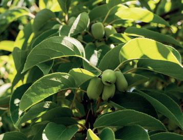 Actinidia arg. ’Tina’ (honplanta), Actinidia arg. ’Tage’ (hanplanta) ’Tina’ är honplanta, pollineras av ’Tage’. Plantera dem nära varandra. Kiwin är torktålig men ger rikligare skörd med god tillgång till vatten. Tina får valnötsstora släta, gröna goda bär som är rika på C-vitamin och oxidanter. Mognar under september månad. Zon: 1-4.