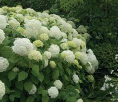 Hydrangea arborescens ’Annabelle’ En mycket dekorativ buske med runda, täta blomklasar. Läge: sol-halvskugga. Blomning: juli-september. Höjd: ca1-1,4 m. Zon: 1-4.