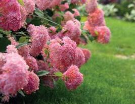 Hydrangea arb. ’Pink Annabelle’ ® PW En mycket dekorativ buske med runda, täta, rosa blomklasar.