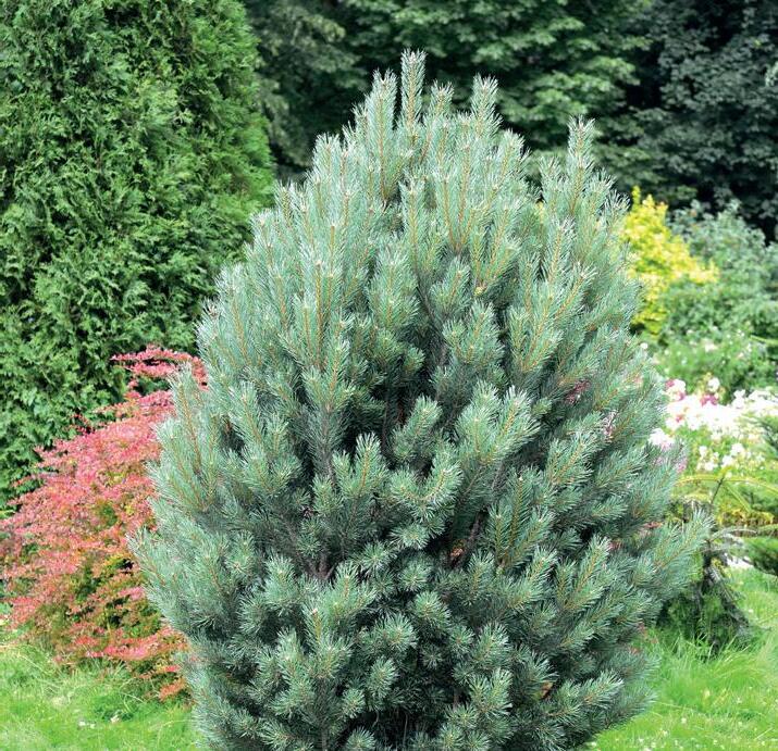 Picea pungens ’Glauca Globosa’ Oregelbunden, tät och rundad gran med blåsilvriga barr. Den är fin som solitär men passar bra även i samplanteringar. Tycker om full sol. Höjd: 1-1,5 m. Zon: 1-5.