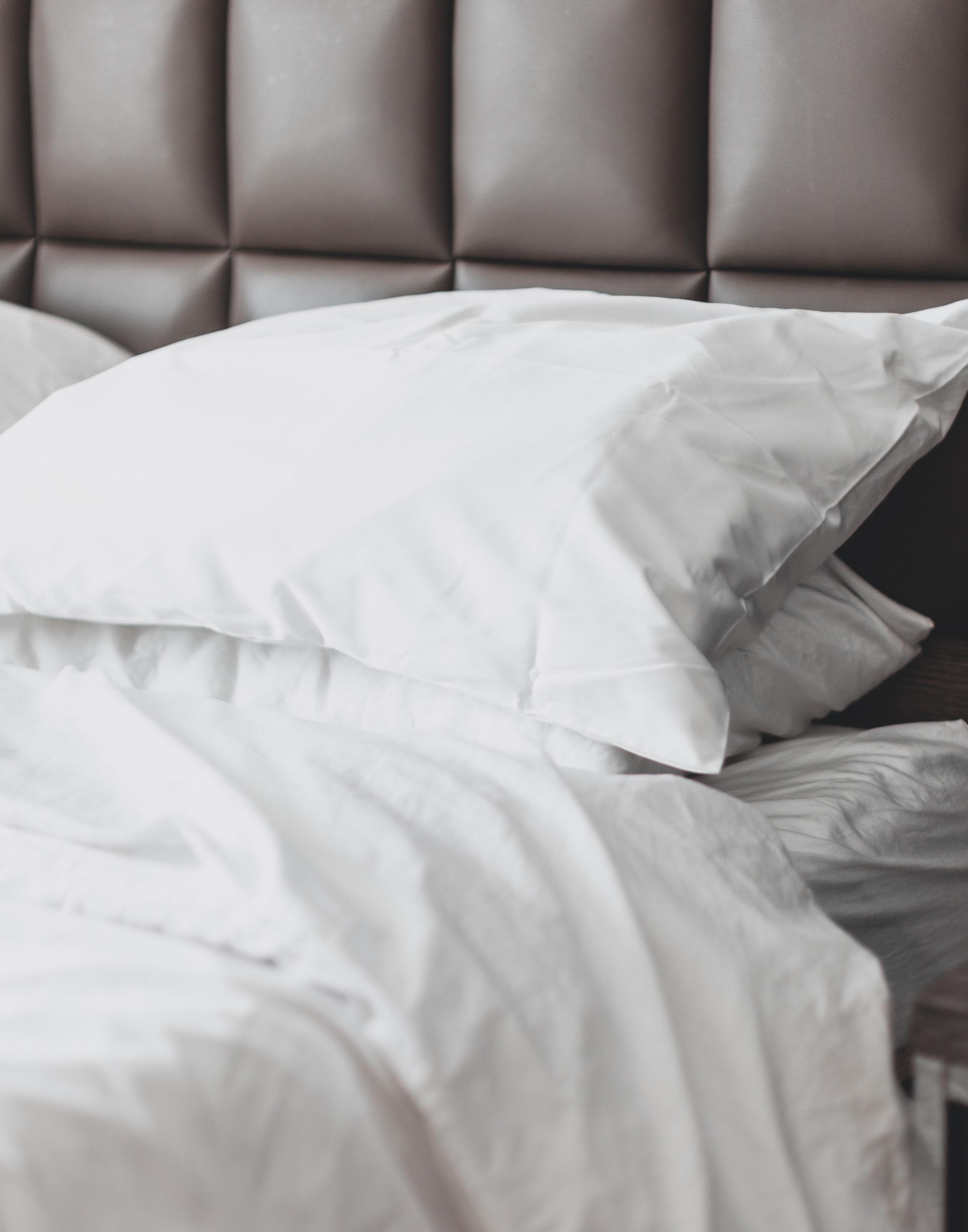 Airy and comfortable hotel pillow sewn with gray thread in a checkered pattern.