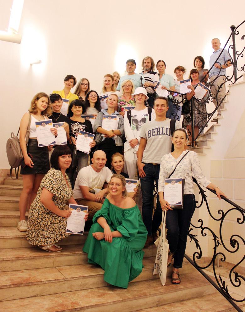 Rok 2022 sme odštartovali Jazykovou knižnou výzvou, súťažou všetkých jazykových centier. Hoci situácia nebola po dujatiam celkom naklonená, od začiatku roka 2022 sme sa s fanúšikmi, vyučujúcimi a študentmi nemeckého jazy ka mali možnosť stretnúť na besede s prekladateľkou Pau línou Šedíkovou Čuhovou, ďalej so známym švajčiarskym autorom Petrom Stammom, ale aj s prekladateľom sloven skej literatúry do nemeckého jazyka Mirkom Kraetschom. Pre vyučujúce nemeckého jazyka sme si pripravili v spo lupráci s Goetheho inštitútom a Nadáciou Volkswagen Slo vakia workshop zameraný na vy užívanie hier vo vyučovacom pro cese, vďaka čomu mali pani učiteľky možnosť hry aj vy skúšať. Pri príleži tosti Dňa Zeme ste sa mohli zapojiť do fotosúťaže, pričom výhercovia získali knižné ceny. Umožnili sme vám tiež vychutnať si stretnutie s troma autormi z Ne mecka, Rakúska a Švajčiarska, ktorí v troch slovenských mes tách pod spoločným názvom Literárne terceto prezentovali svoju aktuálnu tvorbu. Čitatelia si v júli pri kávičke a domácej limonáde na Nádvorí Márie Terézie mohli vypočuť úryvky z niekoľkých noviniek nemeckej literatúry.
