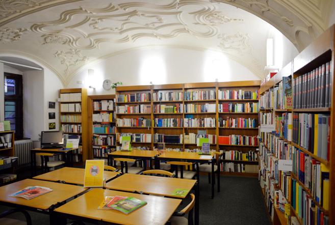 V Nemeckej študovni náj dete širokú paletu odbornej literatúry zameranej na jazy kovedu, tlmočenie a preklad, kulturológiu, politológiu, prá vo, medzinárodné vzťahy, históriu či geografiu. Nachádza sa tu zbierka slovníkov zameraných na odbornú terminológiu a tiež množstvo titulov z oblasti literárnej vedy. Zvedavým čitateľom prahnúcim po ľahšom odbornom čítaní ulahodíme populárno-náučnou literatúrou. V študovni sa nachádzajú aj beletristické diela, medzi ktorými nenájdeme len „klasiku“, ale aj modernú nemeckú prózu autorov zvučných mien a no siteľov prestížnych knižných ocenení. Zjednodušené verzie známych románov s audionahrávkou či cvičeniami určite po tešia začínajúcich nemčinárov. V študovni nezabúdame ani na najmenších zvedavcov, ktorých tu čakajú police rozprávok, detskej literatúry a encyklopédií.