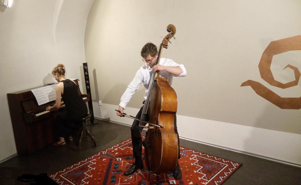 Komorný koncert pre kla vír a kontrabas v Hudobnom átriu v podaní talentovaných umelcov bol nabitý pozitív nou spontánnou energiou a emóciami.