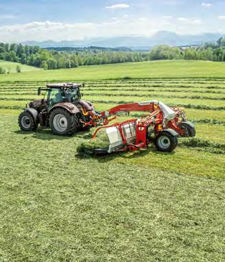 14 chevaux. Deux ans plus tard, la gamme s’est élargie avec un moteur bicylindre de 16 chevaux. Désormais, la variante Rapid «Monta 231» avec son moteur de 23 chevaux complète l’offre. Cela repré sente non seulement une réserve de puis sance dans le domaine des applications prinicipales de fauche et d’andainage, mais élargit les utilisations d’applications complémentaires gourmandes en puis sance. En particulier, l’emploi de broyeurs à marteaux de grande largeur peut être envisagée. Les modèles «S» présentent ici des propriétés adaptées pour piloter la machine de broyage à distance avec une haute efficacité.