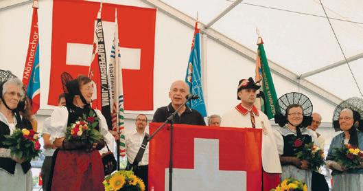Gemeinschaftssinn geprägt wird. Darum möchte ich all jenen Menschen in der Schweiz danke sagen, die sich uneigennützig und auch unaufgeregt in den Dienst der Gesellschaft und der Sache stellen – in Parteien, in Gemeinderäten, in Sport- und Musikvereinen, in den Kirchen, in verschiedensten Gruppen und Organisationen. Sie alle sind der Motor und Motivator der Gesellschaft. Voraussetzung auch dafür ist und bleibt die direkte Demokratie, eine funktionierende Wirtschaft und die Sicherheit.