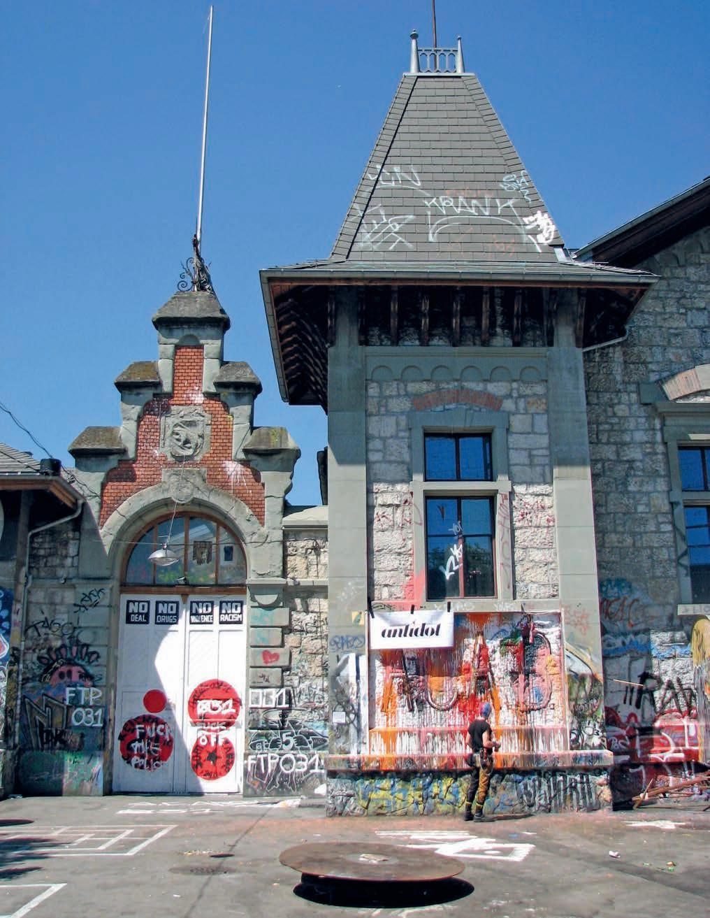 Das erste, was Touristen und Reisende nach Bern sehen, wenn sie in den Bahnhof einfahren, ist die Berner Reithalle mit ihren Sprayereien und Transparenten.