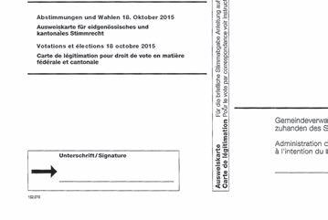 ■ Wenn Sie brieflich abstimmen, reichen Sie das Kuvert bis zum Donnerstag, 15. Oktober 2015 bei der Gemeinde ein.