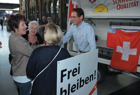 Schweiz als Journalist, auch gegenüber Angriffen aus dem Ausland, etwa im deutschen Fernsehen. Sollte ich gewählt werden – was noch ein weiter Weg ist, – werde ich meine Stärken dafür einsetzen, dass die Schweiz nicht an die EU verschenkt und kaputt gemacht wird. Ich möchte mich auch für eine verbesserte bürgerliche Zusammenarbeit einsetzen. Man muss die kleinkarierten Empfindlichkeiten zurückstellen. Es geht um die Schweiz.