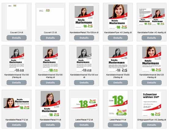 Pour la campagne électorale, une présentation graphique uniforme est élémentaire. C’est la raison pour laquelle l’UDC a créé un portail de modèles d’impression. Il permet d’assurer une image uniforme à l’extérieur. Que vous conceviez une affiche, une lettre, une carte ou que vous souhaitiez publier une annonce relative à une manifestation ou à un thème, vous trouverez sur ce portail tous les modèles nécessaires. Profitez de cette offre, l’inscription est gratuite, l’utilisation est aisée et facile à comprendre.