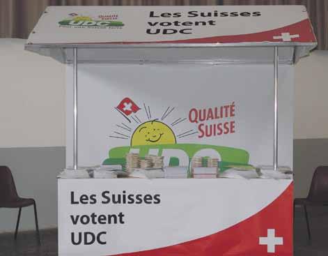 L’UDC s’est dotée de nouveaux stands pour rapprocher ses militants des citoyens. Ce modèle a été présenté à Lugano.