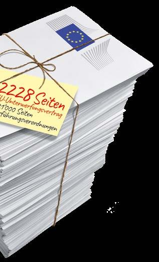 Das ganze EU-Vertragsdossier umfasst 2’228 Seiten. In den Verträgen wird zudem auf verschiedene EuGH-Urteile, EU-Richtlinien und EU-Verordnungen verwiesen. Wer diesen folgt, landet im unendlichen RegulierungsDschungel der EU mit 20’897 Seiten Verordnungstexten.