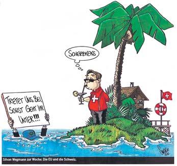 An den jeweiligen Sitzungen der Minister war und ist das gemeinsame Foto wichtigster Programmpunkt, um Einheit demonstrieren zu können. Damit sind die Gemeinsamkeiten aber bereits aufgelistet. –Mit der Einführung des Euro wurde die eigenstaatliche Währungsintervention in Krisensituationen ausser Kraft gesetzt. In der Wirtschafts- und Finanzkrise sind deshalb viele EU-Länder Gefangene der neuen Währung geworden. Sie können den Schutz ihrer eigenen Interessen nicht mehr wahrnehmen. Welche Herausforderung das für den Moloch in Brüssel darstellt erleben wir jetzt täglich. Gewaltige finanzielle Rettungsschirme sind praktisch aus dem Nichts installiert worden. Der IWF, dessen Aufgabe es eigentlich ist, den Entwicklungsländern, meistens den Ärmsten der Armen, unter die Arme zu greifen, wird nun herangezogen, um arg verschuldete EU-Mitgliedstaaten zu unterstützen und vor dem Staatsbankrott zu bewahren. Es ist noch nicht abzuschätzen, welche Dimension das Rettungspaket erhält, wenn die Hilfe auch auf Italien und weitere Länder ausgeweitet werden muss. Dieser Schleuderkurs ist darauf zurückzuführen, dass über Jahre über die Verhältnisse gelebt, der Schuldenwirtschaft nie ernsthaft der Kampf angesagt wurde und die Menschen in den EUStaaten nie in einen demokratischen Weiterentwicklungsprozess miteinbezogen waren. Wer nun aber glaubt, die EU würde aufgrund dieser dramatischen Situation intern über die Bücher gehen, sieht sich in dieser Annahme schwer enttäuscht. Nicht etwa die eigenen Fehler, das eigene Unvermögen sollen korrigiert werden, sondern ein funktionierendes und erfolgreiches Land will man enger an sich binden, ja am liebsten direkt einverleiben. Es ist den EU-Strategen in Brüssel natürlich nicht entgangen, dass die Schweiz die wirtschaftlichen Turbulenzen der letzten Jahre gut überstanden hat, der Staatshaushalt schwarze Zahlen schreibt, Schulden abgebaut werden konnten und der Schweizer Franken für sichere Anlagen so begehrt ist wie noch selten. Darum ist die Absicht für eine engere und/oder andere Zusammenarbeit zum Thema geworden.
