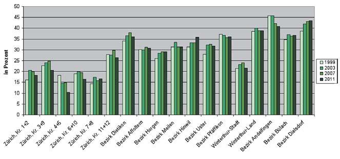 Veränderung SVP-Wähleranteile in den Wahlkreisen bei Kantonsratswahlen 1999–2011. mit hoher Präsenz in den lokalen Vereinen, Teilnahme am öffentlichen Leben und viel Kontakt mit den Leuten auf der Strasse bei Stand und Verteilaktionen der Partei.