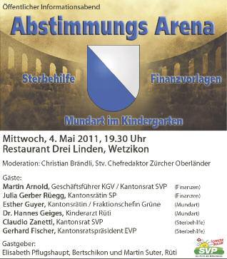 Mittwoch, 4 Mai 2011, 19 30 Uhr, Restaurant Drei Linden, Wetzikon, Abstimmungs-Arena