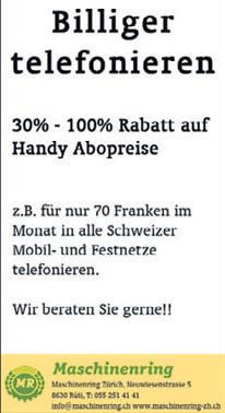Insertionspreis 95 Rp., Gelegenheitsinserate (private) mind. 20 mm, 2-spaltig, Fr. 30.–+ 8% Mehrwertsteuer