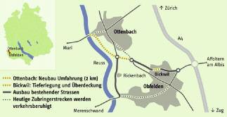 Eine Autobahn ist dann fertiggestellt, wenn die nötigen flankierenden Massnahmen und Zubringer ebenfalls realisiert sind Dies ist bei der Autobahn A4 durchs Knonaueramt, die vor knapp drei Jahren dem Verkehr übergeben wurde, noch nicht der Fall: Der A4-Zubringer Obfelden/Ottenbach, von Beginn ein integraler Bestandteil des neuen Autobahnabschnitts, harrt bis heute seiner Umsetzung Grund dafür ist einerseits die sorgfältige, umweltverträgliche Konzeption der Umfahrung Ottenbach, die zum Teil entlang geschützter Landschaften in der Reussebene führt Das ausgewogene Vorprojekt wurde vom Zürcher Regierungsrat erst kurz vor der Eröffnung der A4 genehmigt Zur verzögerten Umsetzung des A4Zubringers trug andererseits die von grundsätzlichen Positionen der politischen Parteien beherrschte Diskussion der Kreditvorlage im Kantonsrat vom 9 Januar 2012 bei Obwohl der Kantonsrat dem Objektkredit letztlich deutlich zustimmte, ergriff eine Minderheit von Kantonsräten, davon über 90 Prozent aus dem links grünen Lager, das Behördenreferendum und erzwang damit eine kantonale Abstimmung über das seit über 30 Jahren geplante Projekt