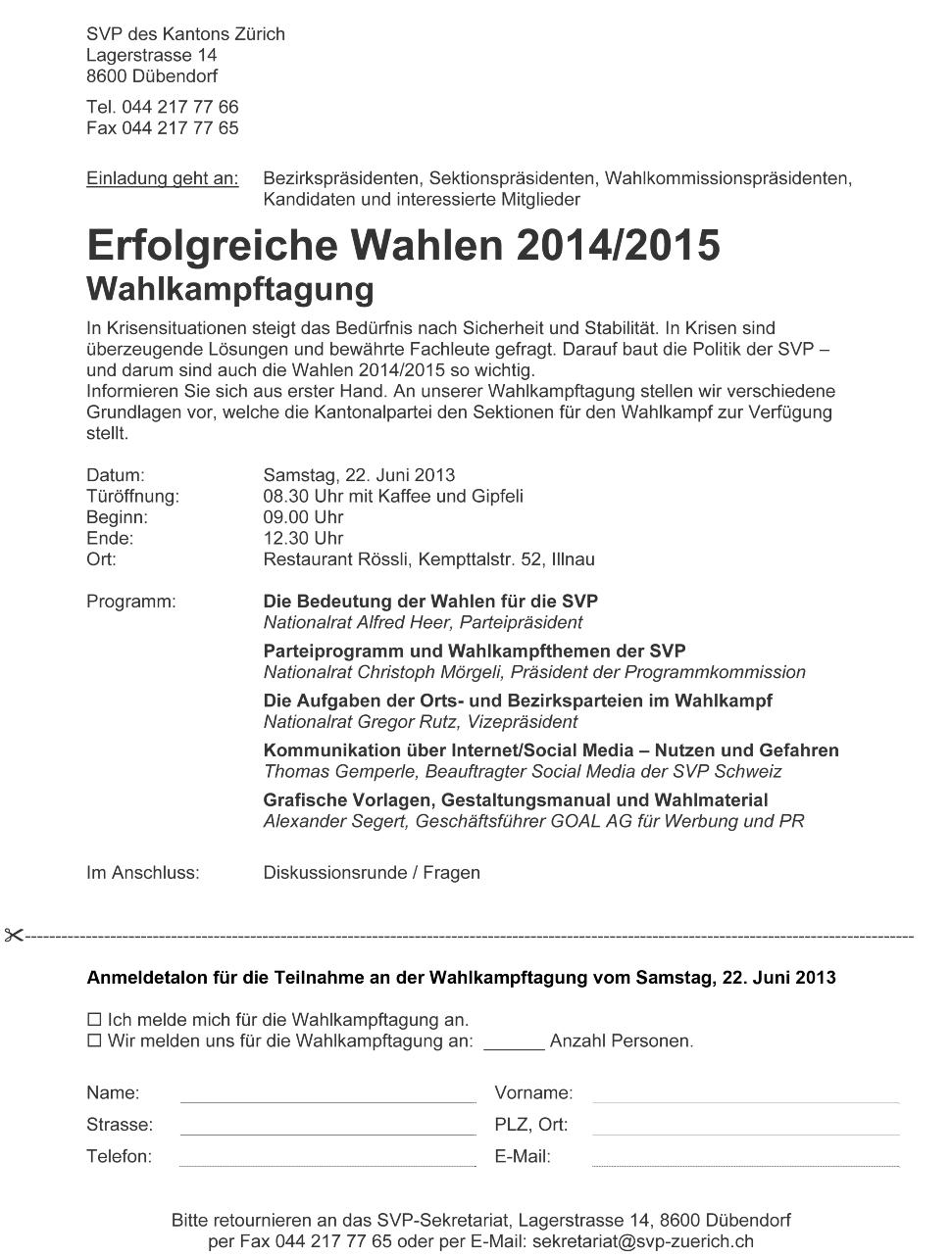 Reinhard Wegelin (rw ) Christoph Bähler (ba ) Tel 044 217 77 64, Fax 044 217 77 65 zb@svp-zuerich ch SVP des Kantons Zürich
