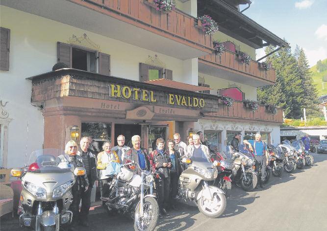 Das Hotel in Arabba war auf Motorradfahrer/-innen ausgerichtet Eine Garage für die Motorräder ein Trockenraum für die durchnässten Kleider und auf der abendlichen Speisekarte nebst dem Menüplan ein Routenvorschlag vom Wirt für die Ausfahrt vom nächsten Tag Vier Tage waren angesagt und der Wetterbericht versprach nun richtig schönes Töffwetter Christian, der Vize, kannte die Gegend und war für die täglichen Ausfahrten zuständig Man merkte, dass