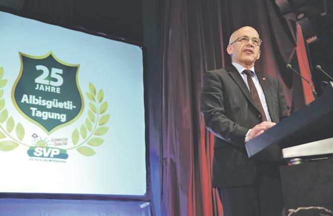 In der Hauptansprache an der 25. Albisgüetlitagung warnte alt Bundesrat Christoph Blocher vor den Gefahren eines EUBeitritts. So gibt es konkrete Pläne, den EU-Beitritt ohne Volksabstimmung durchzuziehen. Weiter warnte Blocher eindringlich vor «Staatskindern» und forderte die 1300 Anwesenden auf, sich gegen den Familienartikel zur Wehr zu setzen