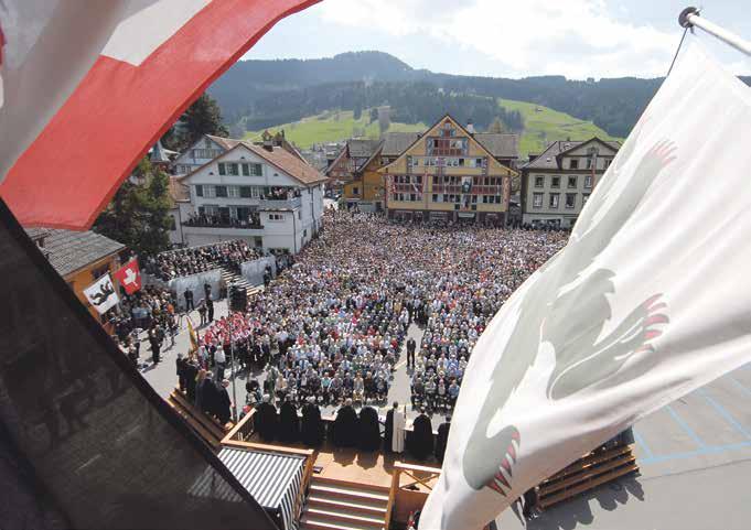 Alljährlich am letzten Sonntag im April versammeln sich alle stimmberechtigten Frauen und Männer von Appenzell I. Rh. auf dem Landsgemeindeplatz in Appenzell.