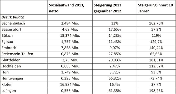 Die Kostensteigerungen im Bereich «Soziales» am Beispiel der Unterländer Gemeinden Schlagzeilen mit horrenden Kosten für Sozialhilfe und soziale Massnahmen dominieren derzeit die nationalen Medienberichte, nachdem bekannt geworden ist, dass eine einzige Familie rund einen Drittel des Steueraufkommens einer ganzen Gemeinde verschlingt. Wie haben sich die Sozialausgaben Zürcher Unterland entwickelt? Die Leistungen sind vielfältigster Art: Unterstützungsleistungen, Wohnungskosten, Krankenkassenprämien, Zahnarztkosten, Brillen, Möbel, Baby-Artikel, sozialpädagogische Erziehungshilfen, Jugendlichen-Beglei-