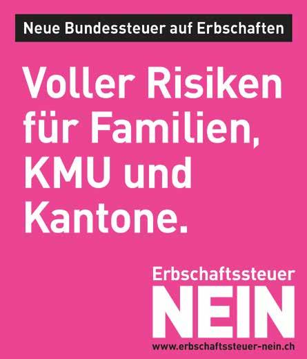 sen sind. Das erwirtschaftete Geld steckt bei ihnen direkt im Betrieb, beispielsweise in Maschinen, Liegenschaften oder Fahrzeugen. Bargeld, um eine neue Steuer im Umfang von 20% zu bezahlen, ist praktisch nirgends vorhanden. Hat ein Unternehmer bzw. sein Nachfolger dieses Geld nicht, wäre er genötigt, Kredite aufzunehmen, auf Investitionen zu verzichten, Arbeitsplätze abzubauen oder schlimmstenfalls den Betrieb zu verkaufen. Es würde finanziell immer unattraktiver, einen Familienbetrieb weiterzuführen. Das bedroht Tausende KMU in ihrer Weiterexistenz, führt zur Vernichtung von Arbeitsplätzen und zu einem weiteren gravierenden Standortnachteil der Schweiz. Aus diesen Gründen lehnen alle bürgerlichen Parteien inklusive Bundesrat diese werkplatzfeindliche Initiative klar ab.