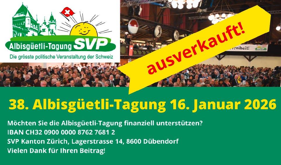 Samstag, 15 November 2025 , 10 30 –13 30 Uhr, Adventsbrunch, Gemeinschaftszentrum, In der Au 1, Volketswil, mit Nationalrat Gregor Rutz. Anmeldung bis 12 November 2025 an info@svp-volketswil.ch.
