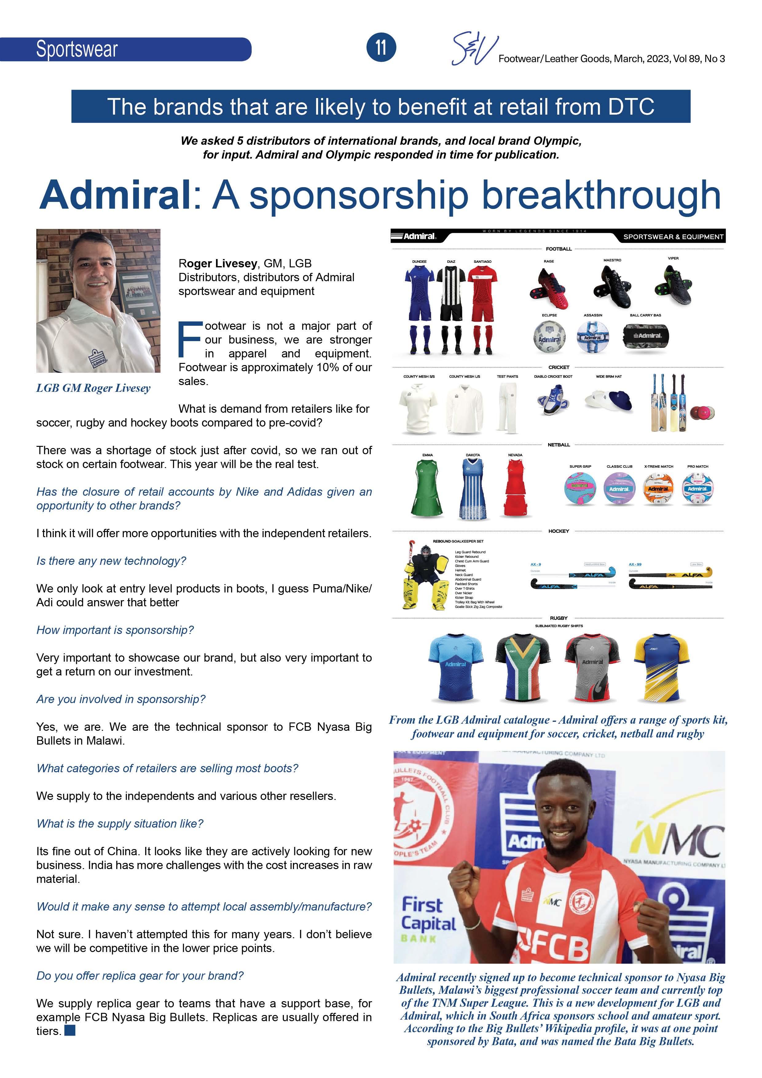 Comment by former professional sportsman, former Adidas marketing director and current sports commentator Gavin Cowley, Mike Augoustides of Mike's Sports, an anonymous Gauteng sports retailer, Roger Livesey of LGB Distributors/Admiral, and Gary van Rooyen of Olympic International SA.