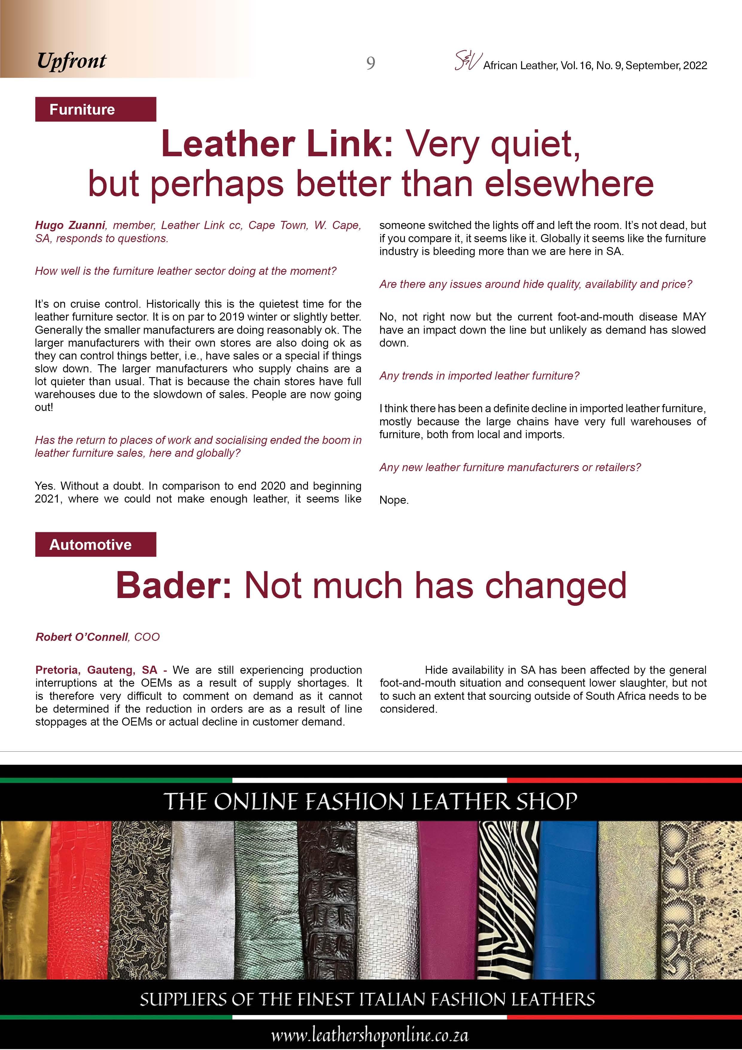 Furniture: Very quiet, but perhaps better than elsewhere in the world, writes Hugo Zuanni of Leather Link.