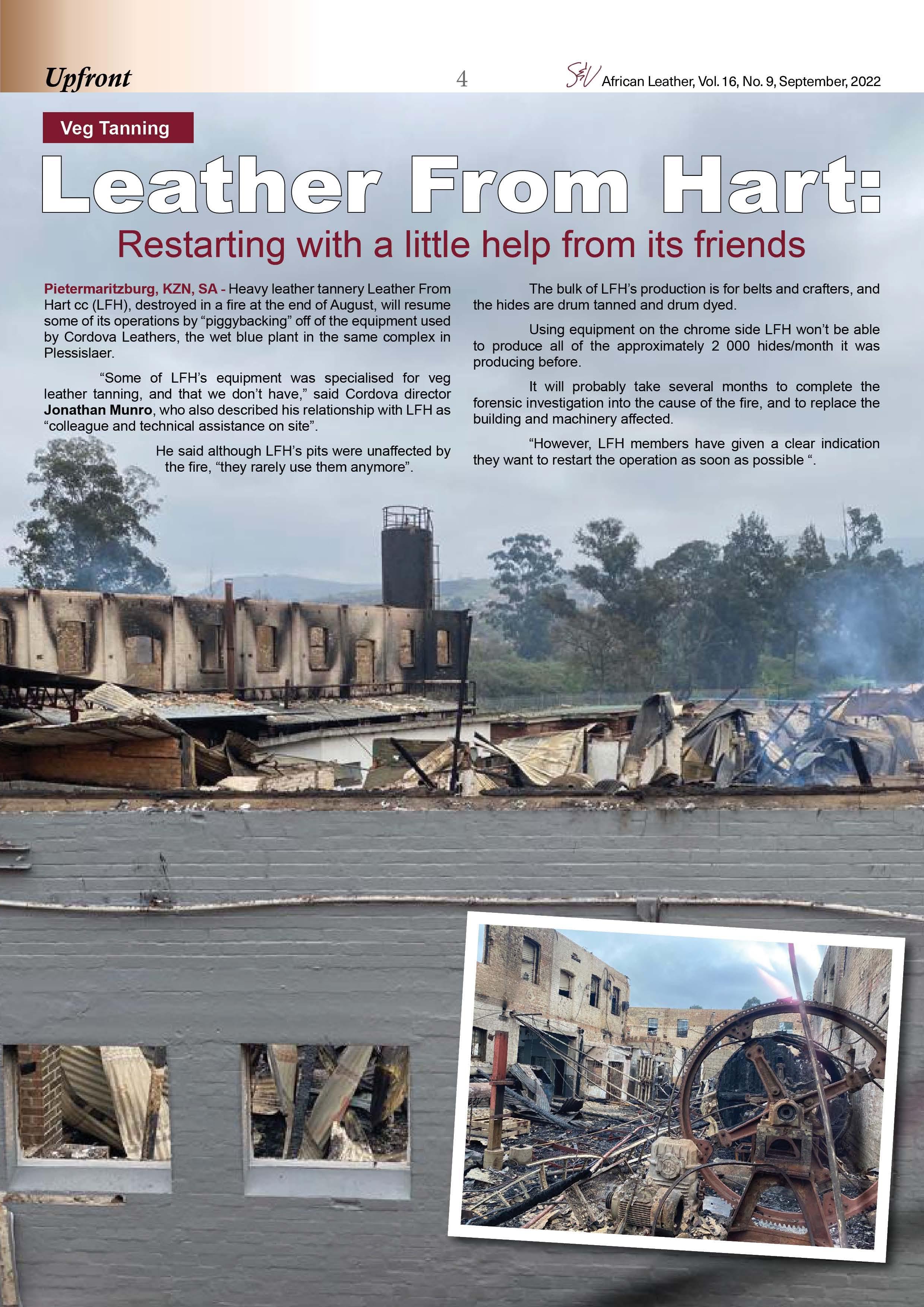 Veg tanning: Leather From Hart is restarting after a fire in August completely destroyed the plant.