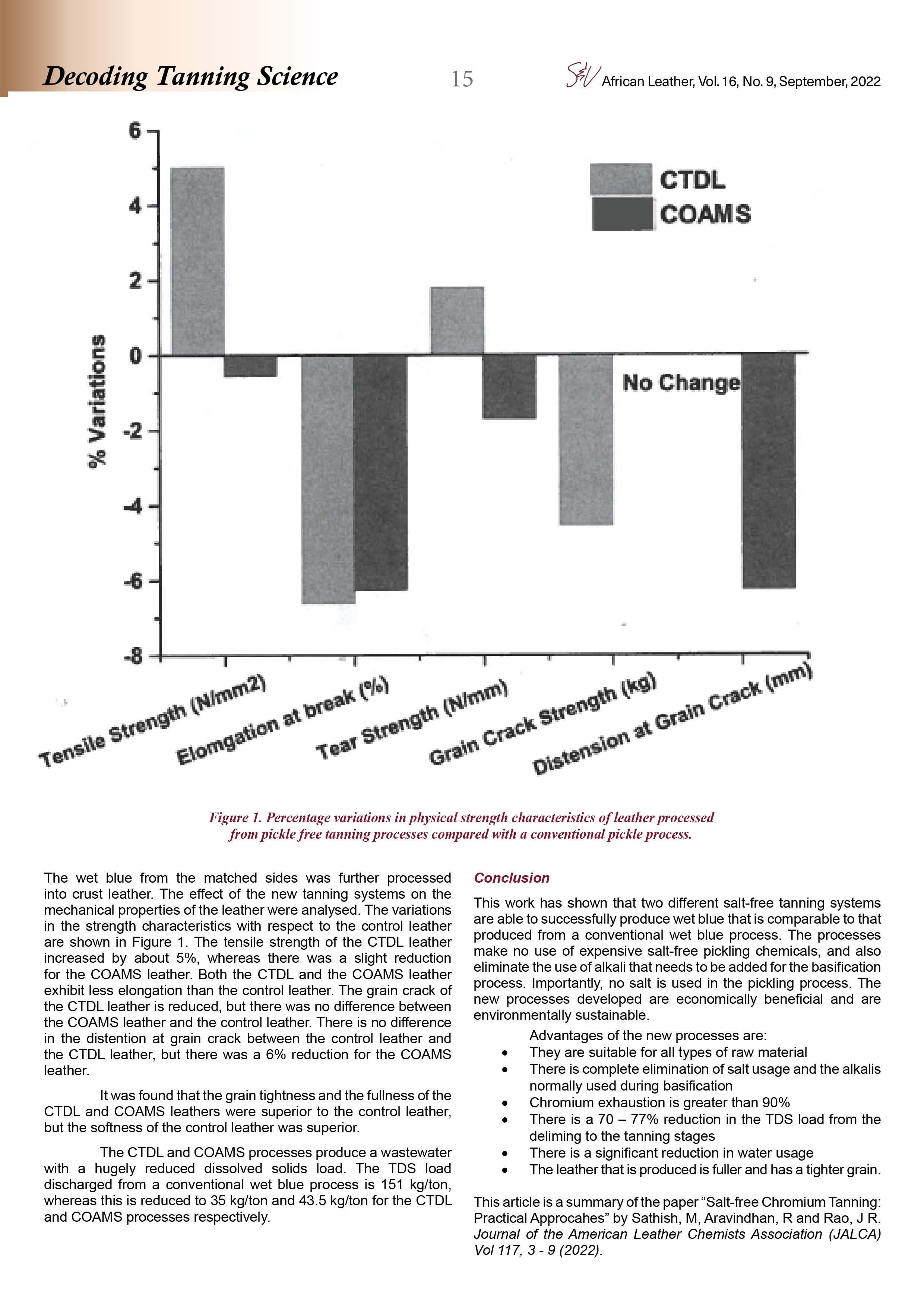 Dr Clive Jackson-Moss of the ISTT reviews a study of low cost, salt-free chrome tanning and finds the new processes developed are economically beneficial and environmentally sustainable.