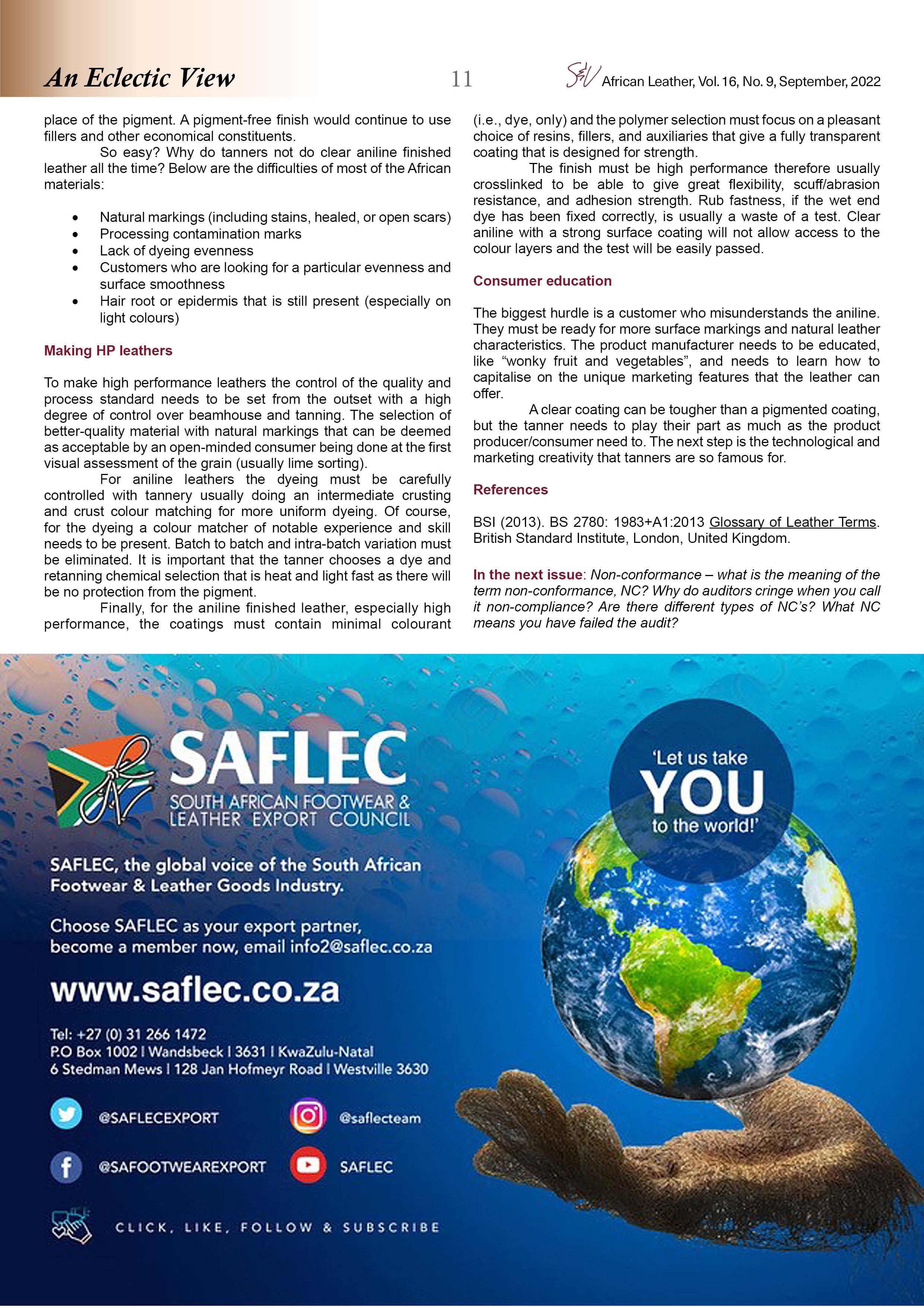 High performance aniline is the purest class of genuine leather, but it comes in many flavours, writes H. Procter.