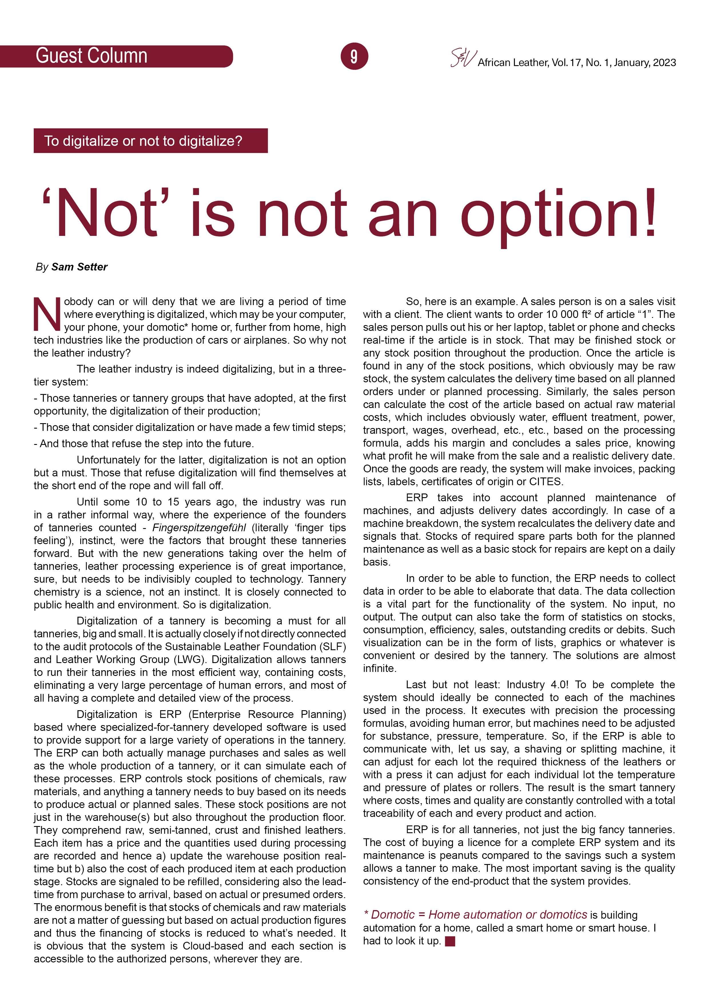 - To digitalize or not to digitalize? 'Not' is not an option, writes Sam Setter.
