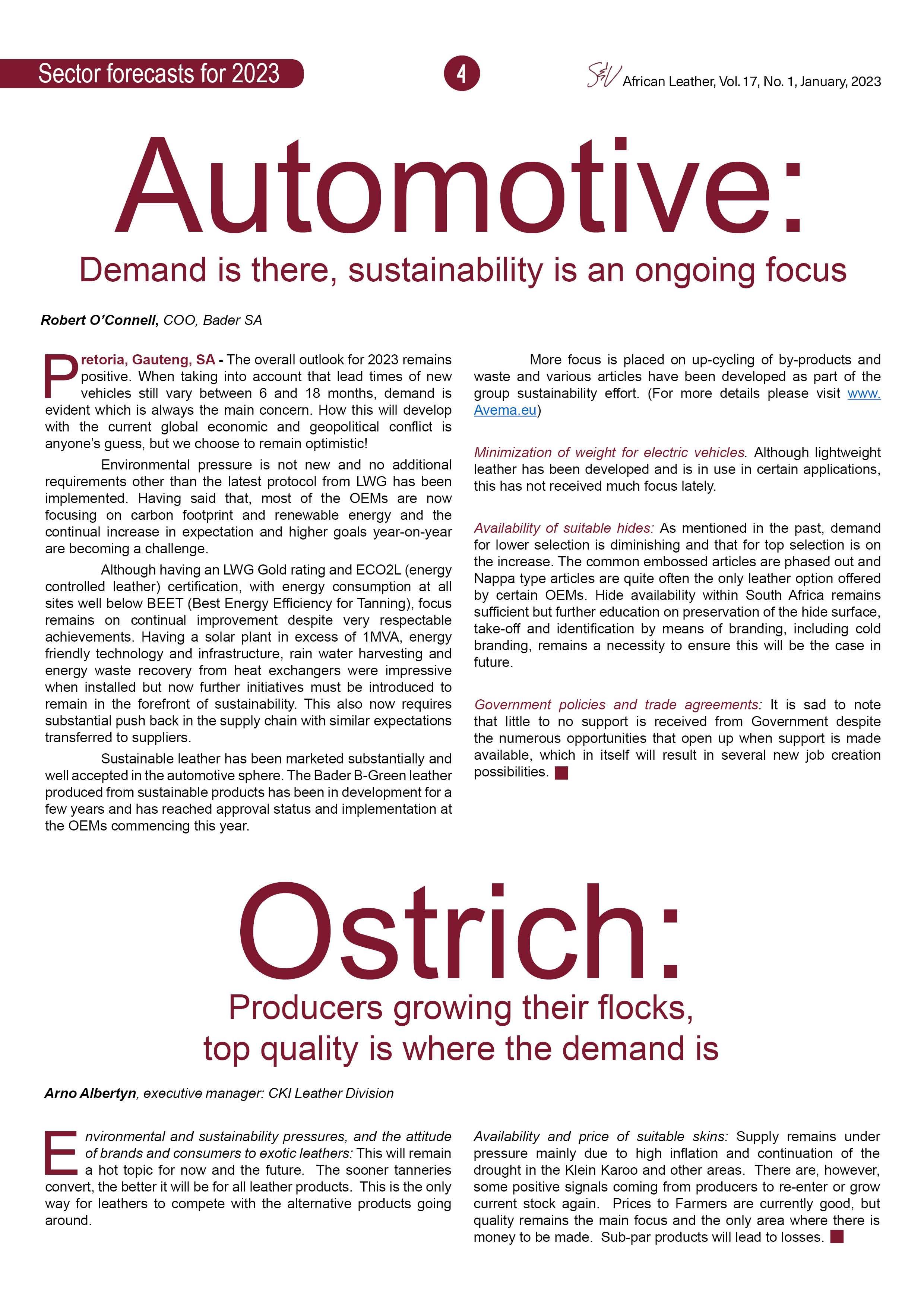 - Automotive: Demand is there, sustainability is an ongoing focus, says Bader's Robert O'Connell.