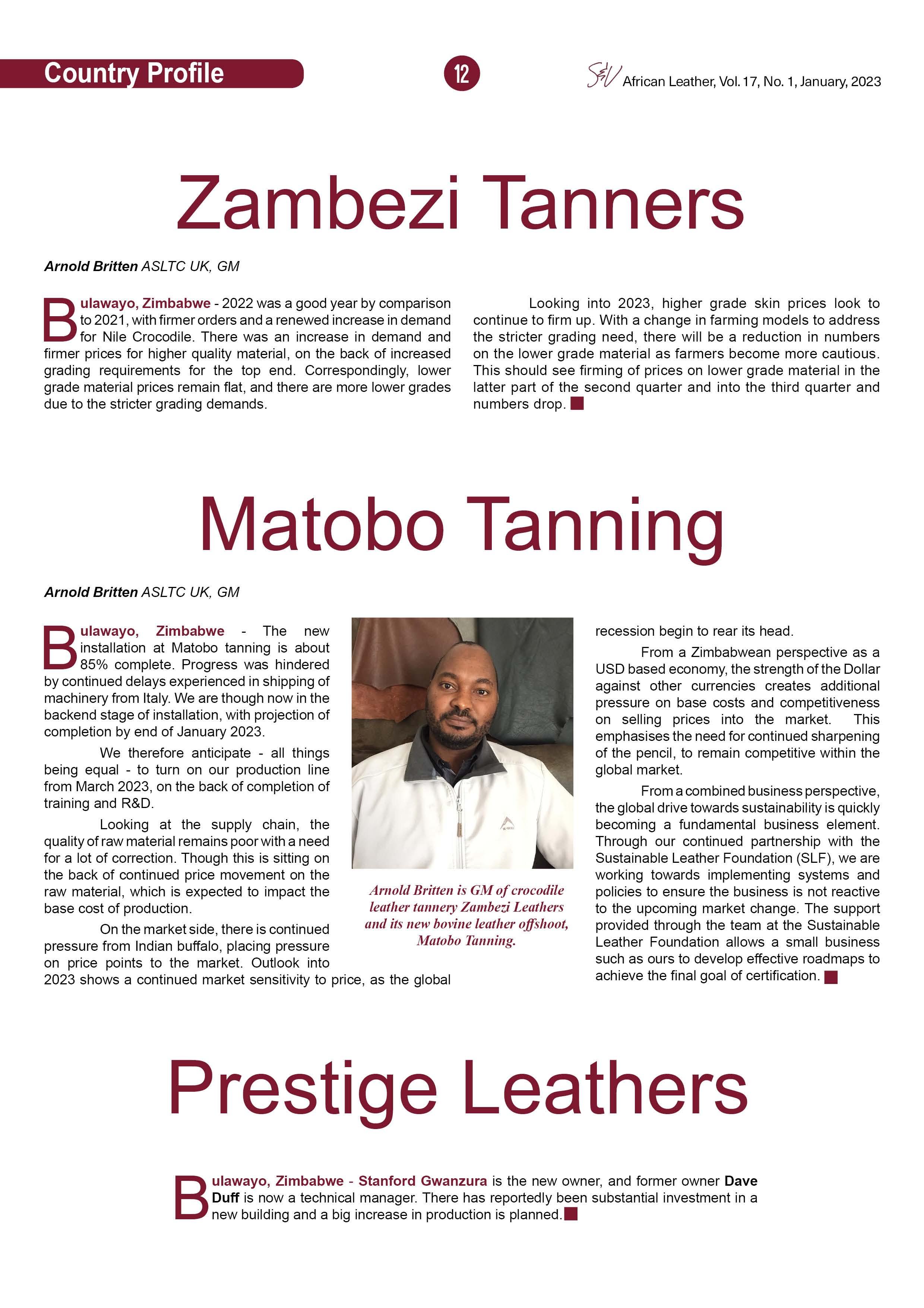 - Zimbabwe's leather industry: Local demand is key to cost effectiveness. Report compiled by John Kleynhans of Consultan.
