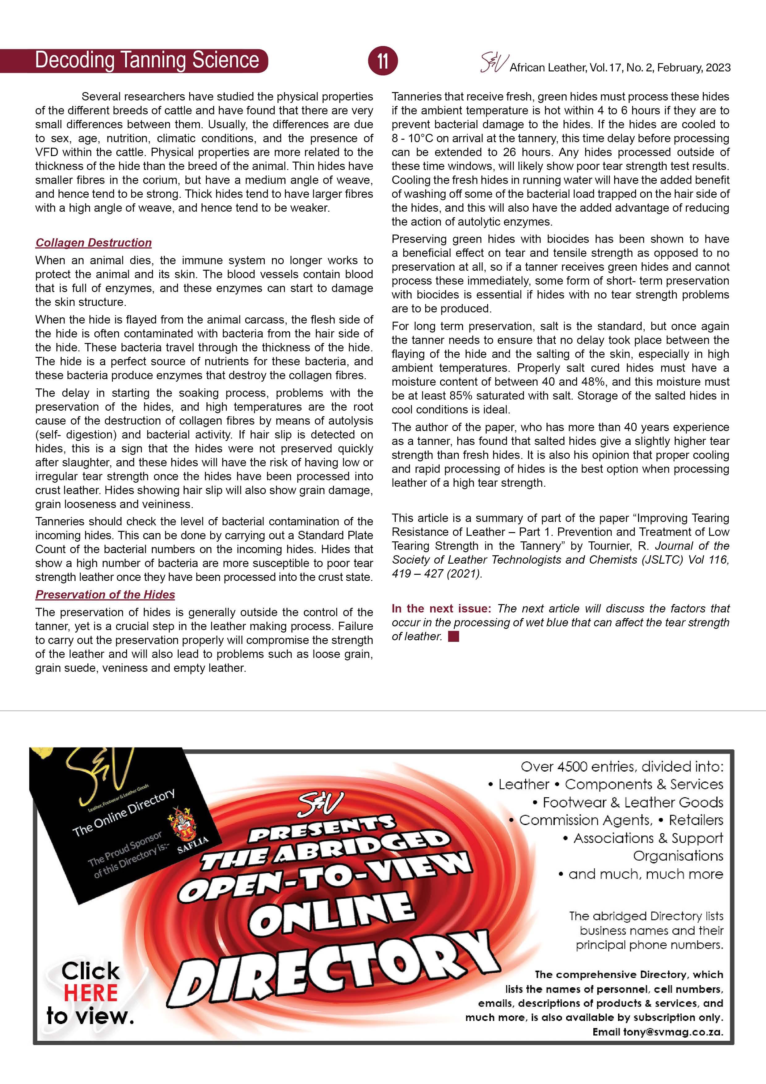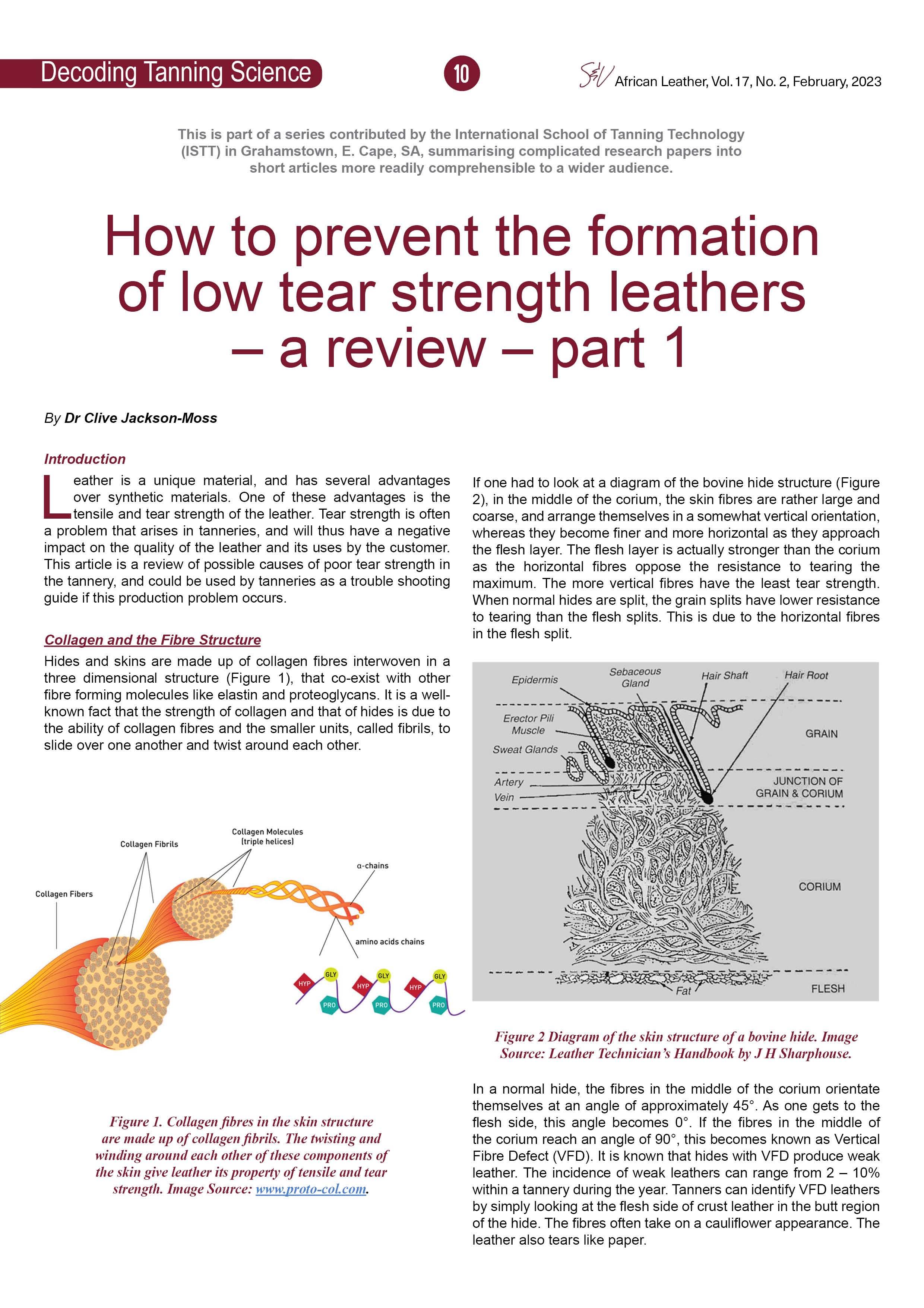 How to prevent the formation of low tear strength leathers - part 1 of a review of technical papers by Dr Clive Jackson-Moss of the ISTT.