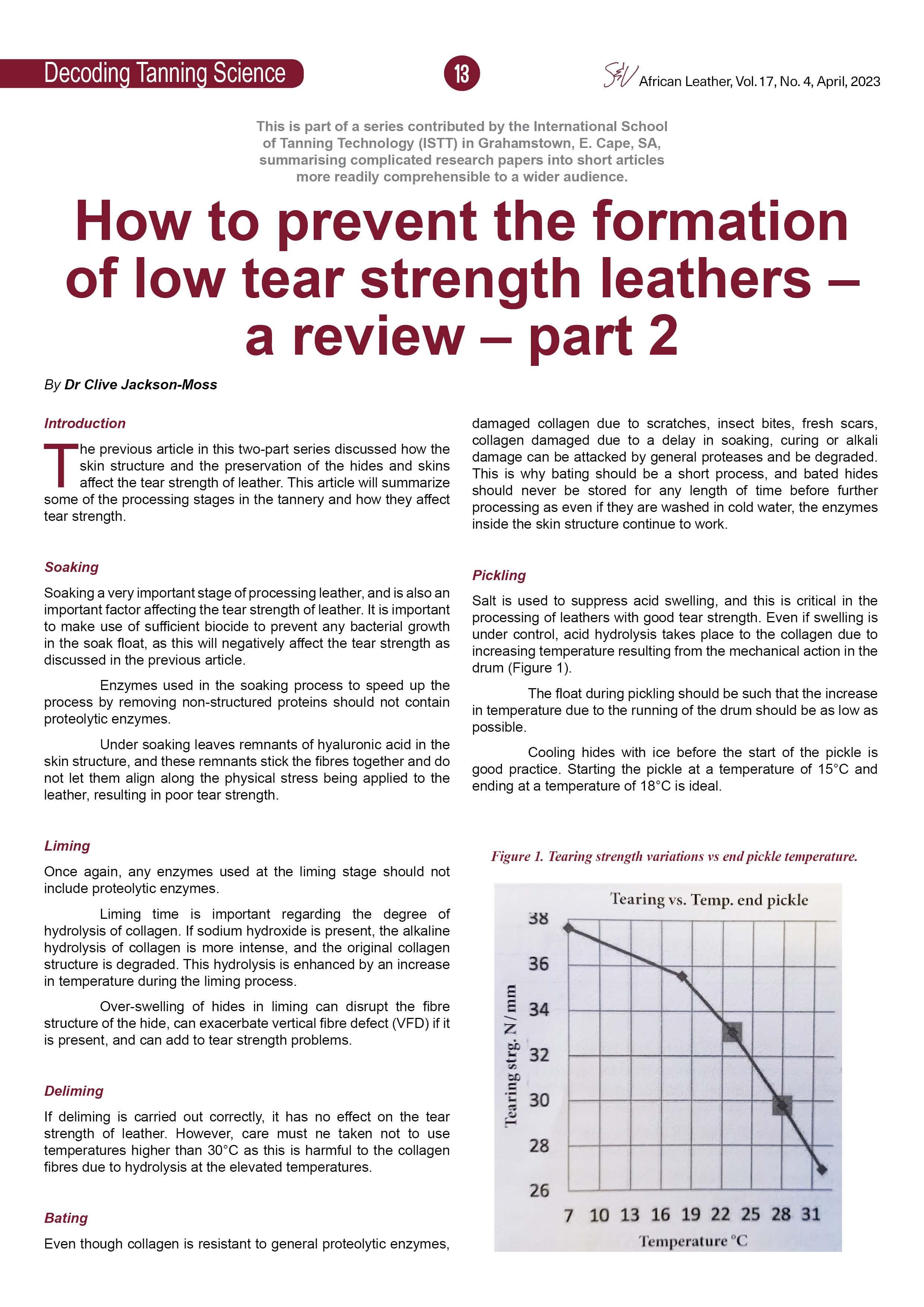 How to prevent the formation of low tear strength leathers - a review - part 2, by Dr Clive Jackson-Moss of the ISTT.