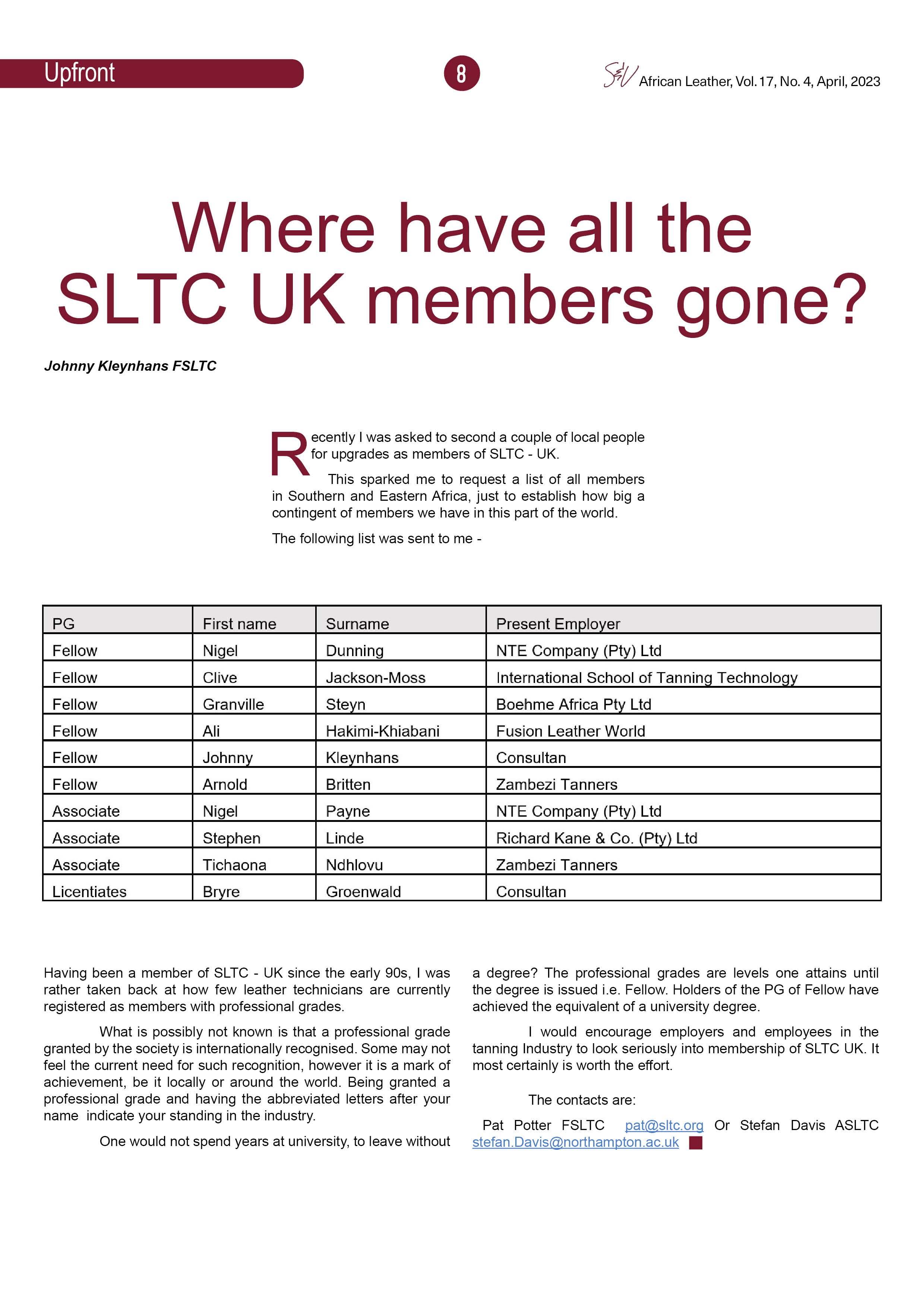 Where have all southern Africa's SLTC UK members gone, asks Johnny Kleynhans.