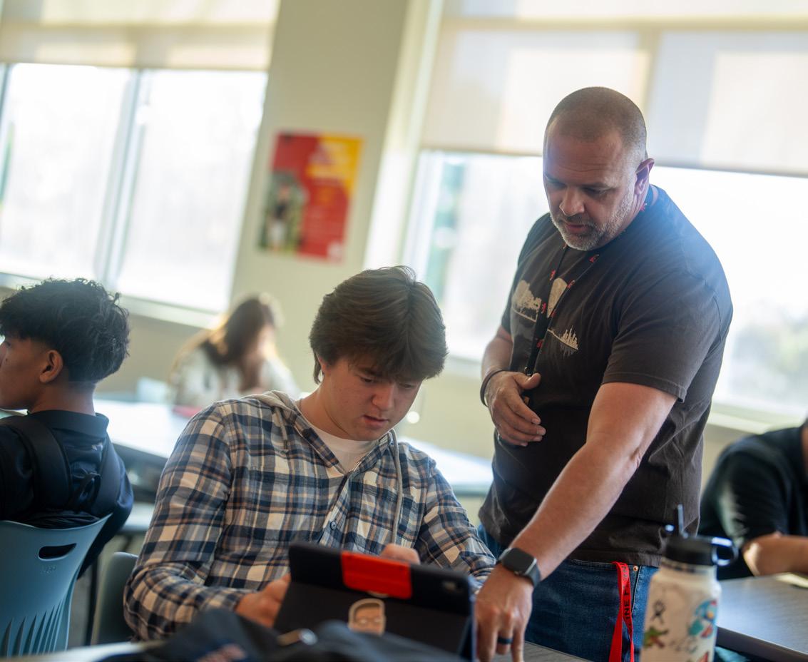 Travis Schlagel, STEM coordinator and PE teacher at Skyline High guides students through how to create with AI in his sports marketing and athletic training classes.