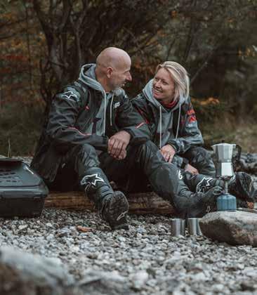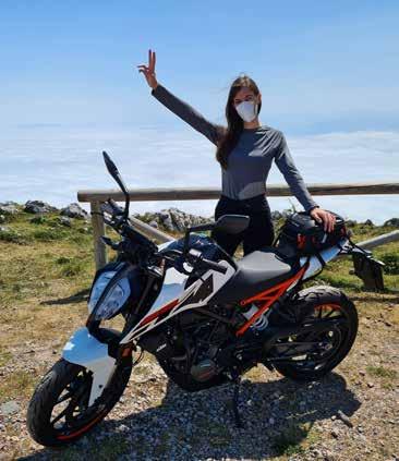 no os perdáis las rutas hacia el Angliru, Puerto del Pontón, Puerto de San Glorio, Somiedo o Pajares, entre otros. Desde ese punto, continuamos el viaje hacia Cantabria, donde hice mis primeras fotos a la moto en los espectaculares acantilados… ¡Y en la playa! Una carretera imprescindible es la N 264, que te ayudará a conectar con los principales puertos y los paisajes más alucinantes del viaje, como el Puerto de Alisas, el Nacimiento del Ason, el Balcón de la Cardosa o la Playa de Liencres. ¿Y cuáles fueran las mejores experiencias en este viaje? Sin duda, ¡la compañía! Me embarqué en este viaje con mis amigos y mi pareja, que llevaba su KTM Duke 125 y para todos nosotros fue muy curioso, a la vez que admirable, ver cómo hacia todas las rutas a nuestro ritmo. Nuestra pasión por las motos nos empujó a vivir esta aventura, llena de anécdotas divertidas pero también muy duras. En un viaje te puede llover, nevar, puedes enfermar, pinchar una rueda o tener cualquier tipo de avería… Pero el compañerismo en esos momentos lo es todo. Y es lo que yo siento con la gran familia de la que formo parte con SW‑MOTECH. Cuando les conté que mi pareja y yo íbamos a hacer este viaje, se preocuparon en todo momento de que nuestras dos motos fueran equipadas y protegidas con los mejores accesorios, ¡no nos faltó de nada! Y les estoy tremendamente agradecida, porque no sólo demuestran que el tipo o cilindrada de moto que tienes, no es una limitación para viajar… Porque desarrollan casi todos los productos para cada modelo y con una calidad extrema, sino que ellos te acogen y tengo confianza plena en ellos, sobre todo cuando más lo necesito.