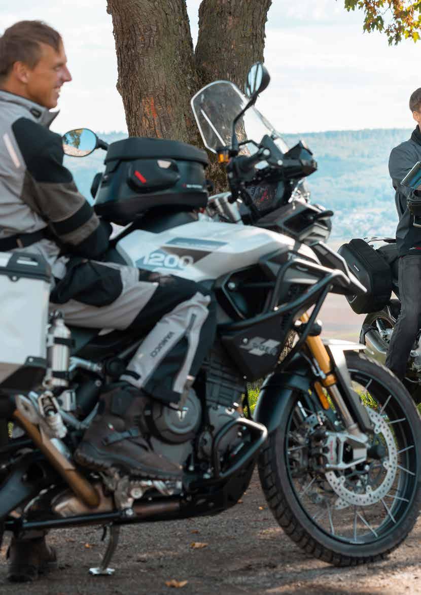 Los fabricantes de motocicletas nos dieron algunas noticias muy interesantes el año pasado y ahora finalmente podemos entregarlas: hemos agregado una Triumph Tiger 1200 y una Ducati Desert X a nuestra flota interna de ferias comerciales y, por supuesto, hemos desarrollado todos los productos más relevantes. Nuestro tiempo de entrega también ha mejorado significativamente y me complace que podamos volver a suministrarle productos SW‑MOTECH de forma puntual.