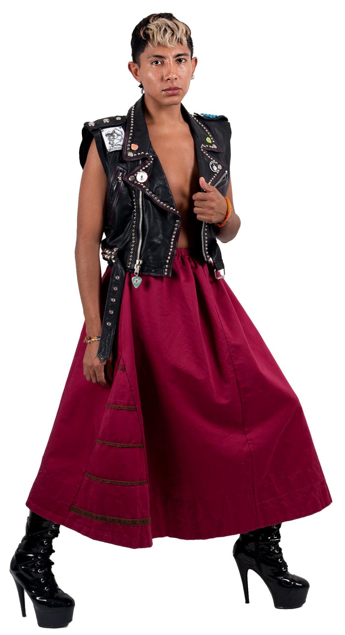 Left: Leather motorcycle jacket Edwardian inspired skirt